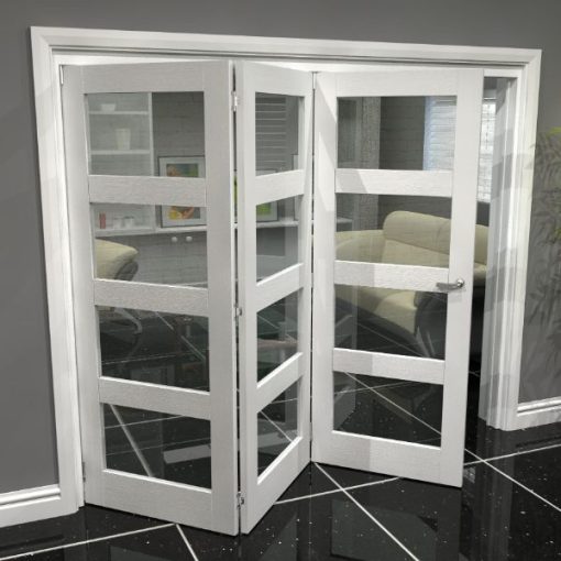 - Green and Taylor White Primed Shaker 4 Lite Clear Glazed 3 Door Roomfold Doorset